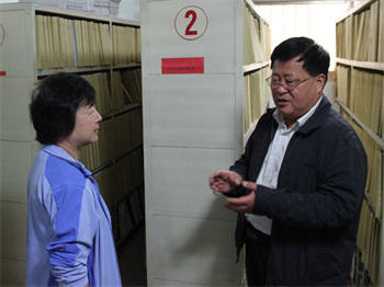 (董事長榮長遠向任瓏副會長介紹檔案室)