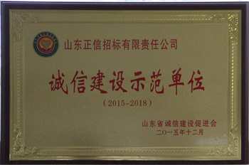 山東正信招標有限責任公司榮獲由山東省誠信建設促進會頒發的“誠信建設示范單位”稱號