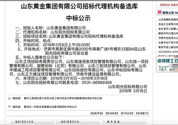 2018年3月8日,山東黃金集團有限公司公開招標代理服務機構,山東正信招標有限責任公司憑借優(yōu)異的業(yè)績,精良的文件及方案編制,以及強大的精英團隊配備,成功進入該招標代理機構庫,并于3月16日在網上進行了公示。
