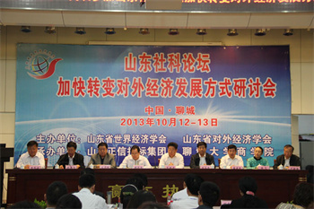 10月12日,山東社科論壇:加快轉(zhuǎn)變對外經(jīng)濟發(fā)展方式研討會在正信隆重召開。 正信會所內(nèi)人潮涌動,好不熱鬧。來自全省各地的共100余名專家學(xué)者們聚集在這里,研討山東省加快轉(zhuǎn)變對外經(jīng)濟發(fā)展方式問題。山東省世界經(jīng)濟學(xué)會會長、山 東省對外經(jīng)濟學(xué)會名譽會長、濟南大學(xué)黨委書記范躍進(jìn),山東省社會科學(xué)聯(lián)合會副主席周忠高,聊城市委常委宣傳部長趙慶忠等領(lǐng)導(dǎo)出席會議并致辭。會場上,專家 圍繞山東省國際貿(mào)易、金融發(fā)展、中國服務(wù)業(yè)國際地位考察等專題進(jìn)行了研討,對于進(jìn)一步促進(jìn)聊城以及正信招標(biāo)集團的發(fā)展具有重要的理論引導(dǎo)。