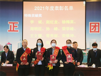 本次會議由集團黨支部書記周明臣主持,首先由集團副總趙紅龍同志宣讀表彰及相關(guān)文件,隨后集團副總徐海霞同志主持授獎活動,對2021年度功勛員工、貢獻獎、專業(yè)技術(shù)人才、先進單位、先進個人等各類受表彰人員、單位進行頒獎。